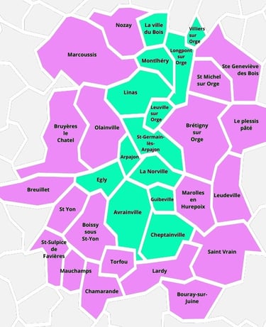 Je me déplace principalement dans le secteur de Montlhéry - La Norville (carte disponible avec les zones desservies ci-dessous). Cependant, si vous résidez dans une autre commune, n'hésitez pas à me contacter afin de voir ensemble si je peux me déplacer jusque chez vous. Un supplément pourra être appliqué sur pour les frais de déplacement dont je vous avertirais dès notre échange.